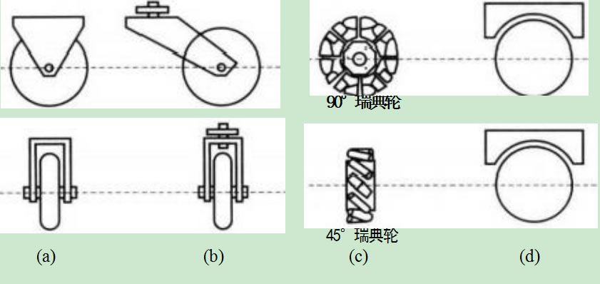 按照有無(wú)推進(jìn)力功能,車(chē)輪可以分為驅(qū)動(dòng)輪和從動(dòng)輪兩大類(lèi)。根據(jù)單個(gè)車(chē)輪 的自由度,車(chē)輪可劃分為一般車(chē)輪、球形輪、全方位輪等幾類(lèi)。車(chē)輪與移動(dòng)地面之 間的接觸區(qū)分為滑動(dòng)接觸、滾動(dòng)接觸兩種。