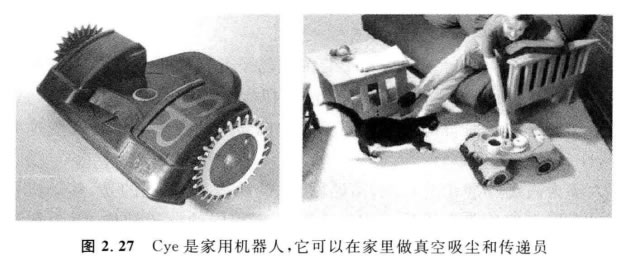 令人驚奇的是,靜態(tài)穩(wěn)定所要求的Z小輪子數(shù)目是2個(gè)。如上所述,如果質(zhì)心在輪軸下面, 一個(gè)兩輪差動(dòng)驅(qū)動(dòng)的機(jī)器人可以實(shí)現(xiàn)靜態(tài)穩(wěn)定。 Cye 就是使用這種輪子 結(jié)構(gòu)的商業(yè)移動(dòng)機(jī)器人(圖2.27)。