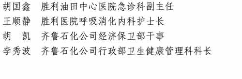 王順靜 勝利醫(yī)院呼吸消化內(nèi)科護(hù)士長胡凱 齊魯石化公司經(jīng)濟(jì)保衛(wèi)部干事