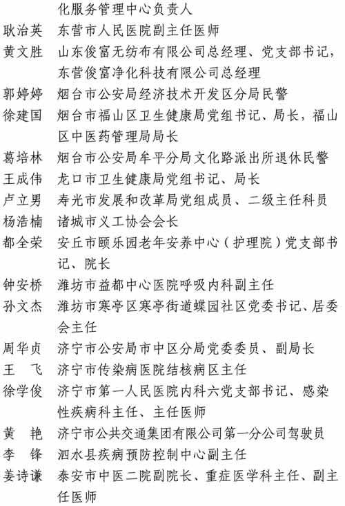 黃 艷濟(jì)寧市公共交通集團(tuán)有限公司D一分公司駕駛員李鋒泗水縣疾病預(yù)防控制中心副主任