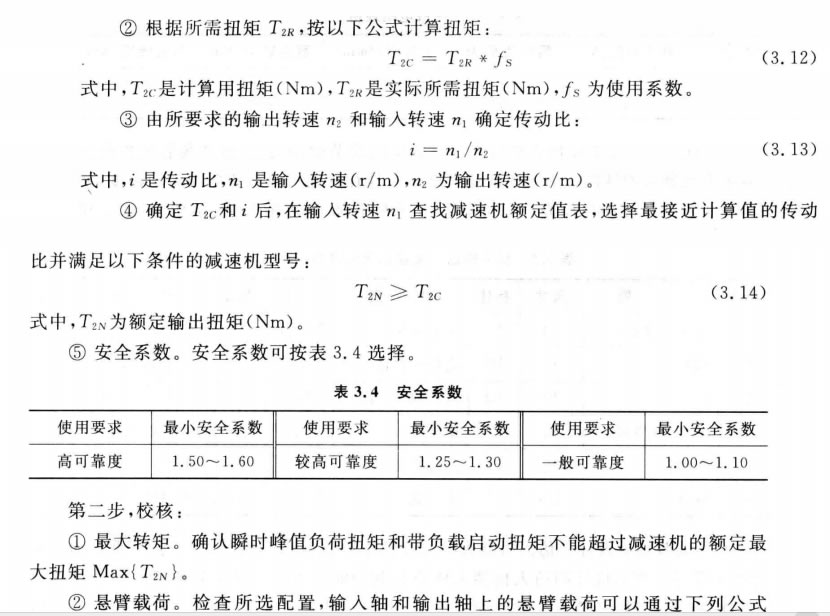 (4)精密行星減速機(jī)選型及其問(wèn)題。選用精密行星減速機(jī)應(yīng)考慮其結(jié)構(gòu)類型、安裝 形式、承載能力、輸出轉(zhuǎn)速、工作條件等因素。減速機(jī)的承載能力是在額定轉(zhuǎn)速下,每天 工作10小時(shí)和啟動(dòng)數(shù)少于10time/h 及平穩(wěn)無(wú)沖擊的條件下得出的,所以應(yīng)按以下步驟 進(jìn)行選型[97]。